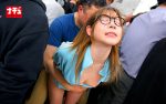 電車の中でインナーを抜き取られ透け巨乳を見られる羞恥で抵抗できないシアーシャツ女子2